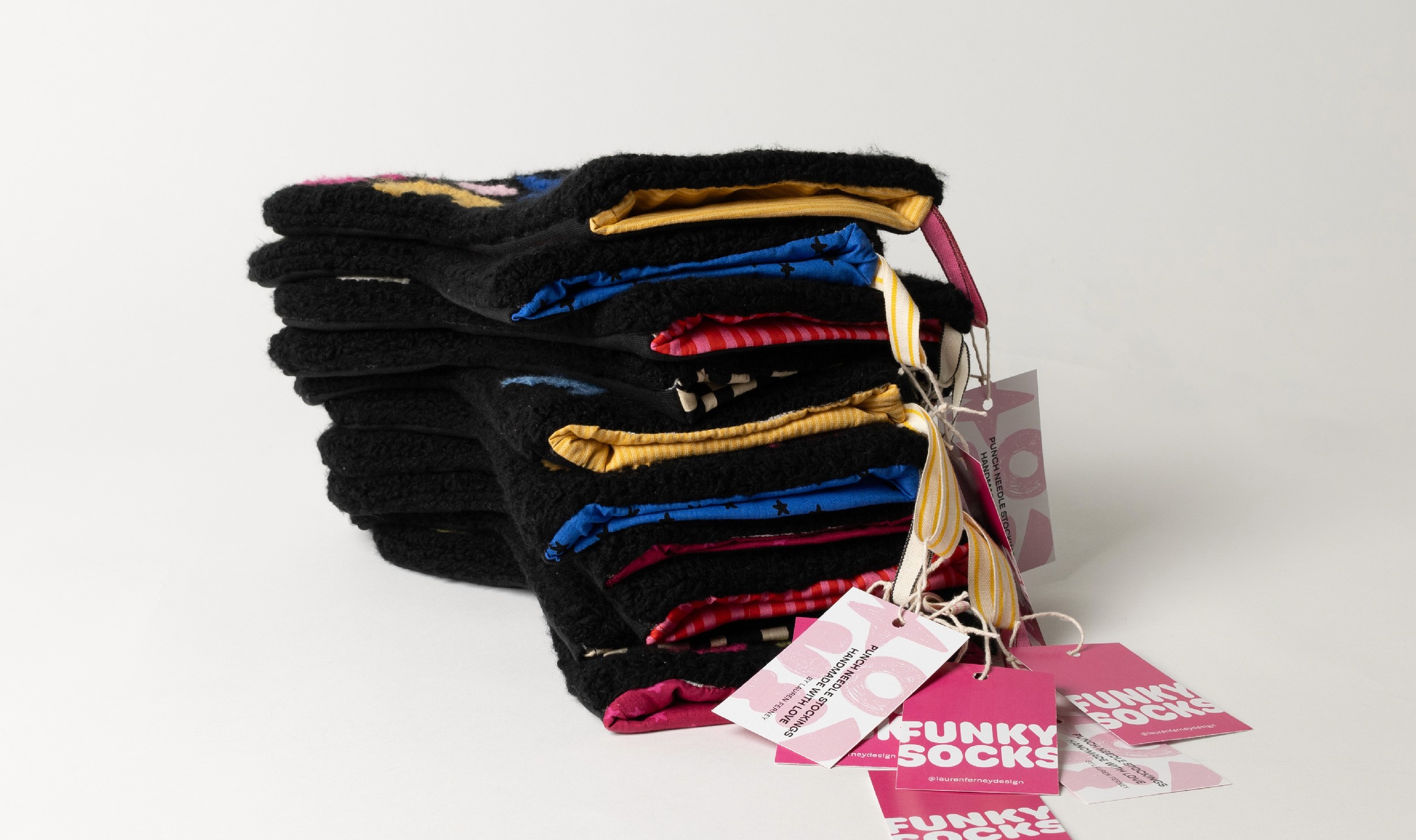 Curio is an annual pop-up shop showcasing handcrafted products from Brigham Young University students across various disciplines. These punch needle stockings were made to bring a fresh twist to classic Christmas with vibrant colors, playful shapes, and modern designs. Each piece is crafted with care and creativity to add a unique and festive touch to holiday traditions.